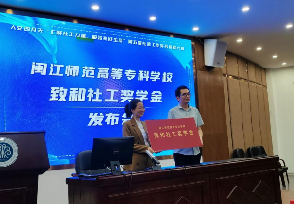 在比赛之余,社会工作专业的四只社工服务队上台为到场观众介绍了服务队发展情况,包括驿里社区儿童服务、驿里社区长者服务、省立医院宁养志愿服务以及马尾区社会救助入户探访四个项目,展示了社工专业风采。同时,现场举行了“致和社工奖学金”发布会,该奖项用于奖励在社会工作学习实践过程中表现突出的学生,以激励社工学子投身社会工作事业奉献力量。