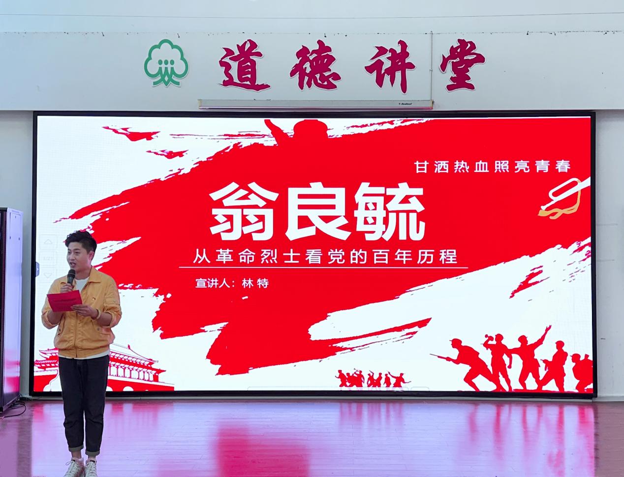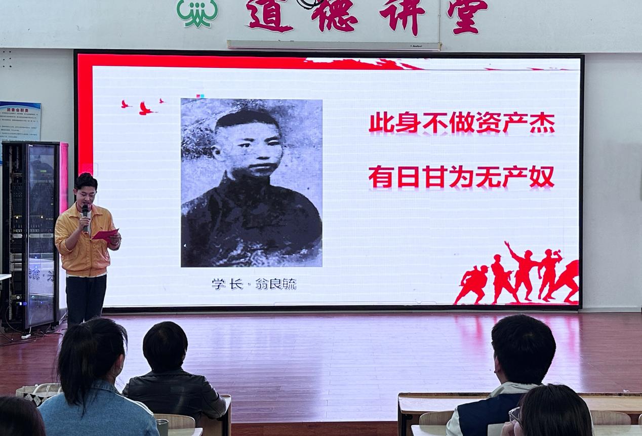 在团课环节,福州市艺术学校团支部书记林特以《甘洒热血·照亮青春——从革命烈士翁良毓看党的百年历程》为题,为全体团员上了一堂生动的主题团课。他通过讲述学长翁良毓的感人事迹及播放闽剧《青春祭》、话剧《照亮青春》等片段,让团员们深刻感受到党的百年奋斗历程和五四精神的伟大力量。