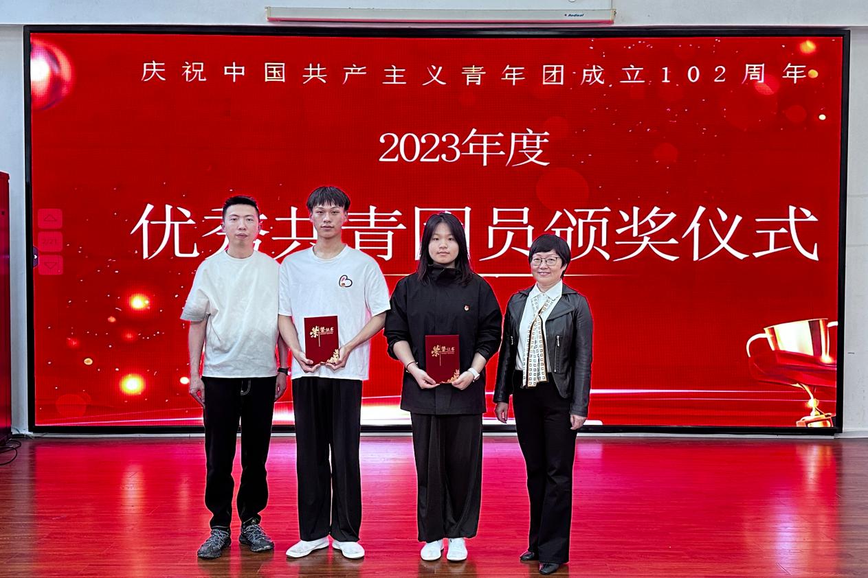 活动中,学院党委书记江柳青、副院长陈志勇为孙泺彬、廖文涛两位优秀共青团员颁发了2023年度荣誉证书,勉励他们继续努力、再接再厉,并激励其他团员以他们为榜样,继承弘扬五四精神,奋发向上、开拓进取,努力成长为有理想、敢担当、能吃苦、肯奋斗的新时代好青年。