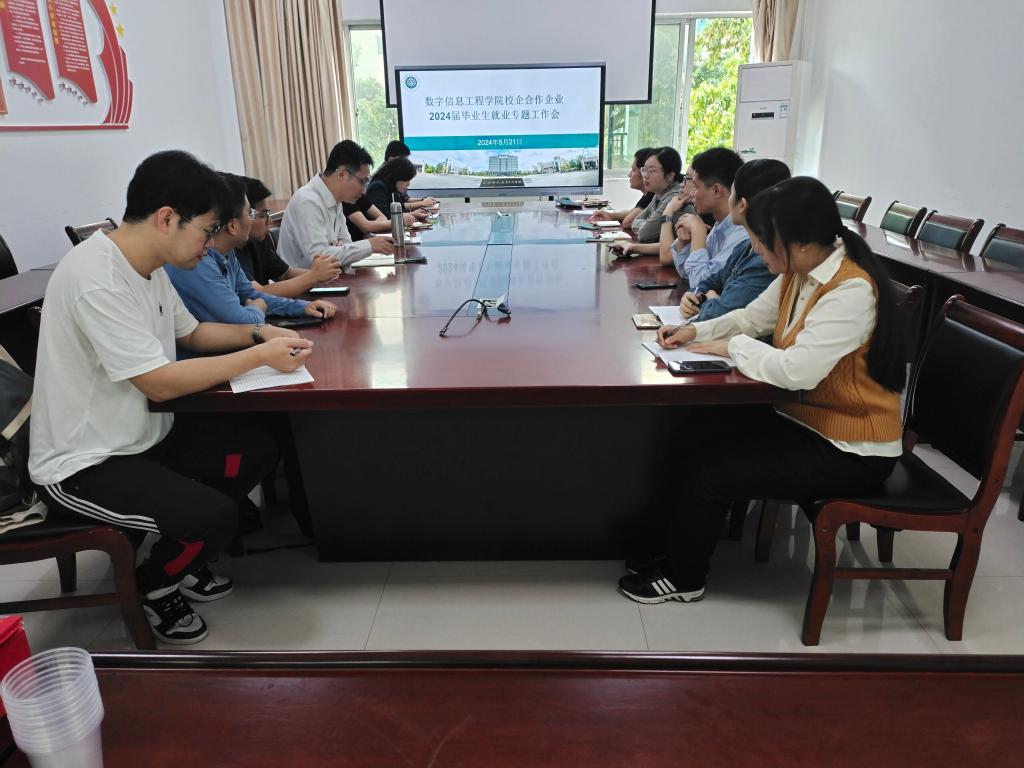 5月21日上午,数字信息工程学院在仓山校区2#201B召开校企合作企业就业专题工作会。北京新大陆时代科技有限公司、福建国科信息科技有限公司、福建网龙普天教育科技有限公司、福建中锐网络股份有限公司、福建北科信息技术有限公司共5家校企合作企业应邀参会。学院院长朱发财、副院长冯光、党委副书记董秋锋、各专业教研室主任及毕业班辅导员共同参加。