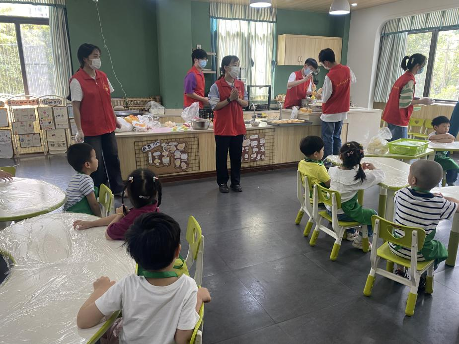为了加强青少年、儿童对食物营养、食品安全的认识,引导化生学院学生积极开展专业知识的传播与应用,5月15日,化学与生物技术学院教师党支部副书记黄雅萍带领团员学生前往闽江师范高等专科学校附属实验幼儿园开展“党建引领志愿红,青年儿童共成长”食育浸润幼儿课堂志愿服务活动。