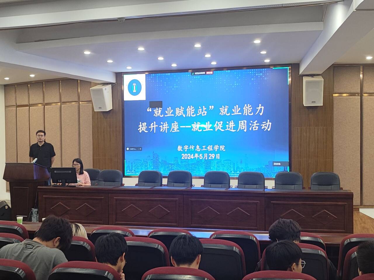 5月29日下午,数字信息工程学院在仓山校区多功能厅开展 “就业赋能贴”就业能力提升活动,开设以简历制作指导及面试辅导专题讲座。本次主讲嘉宾为福建新大陆时代科技有限公司企业职业导师吴锋,近300余名学生现场参加,毕业班学生通过直播线上收看。