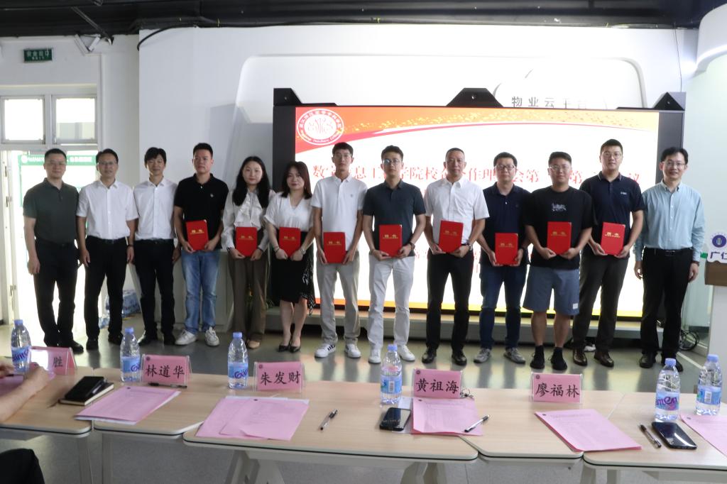 会上,数字信息工程学院院长朱发财致欢迎词,对此次参会嘉宾表示热烈的欢迎和衷心的感谢。本次会议新增补理事单位19家,朱发财宣读《关于调整、增补数字信息工程学院校企合作理事单位的批复》,由大会决议通过,并为新增理事单位颁发聘书。