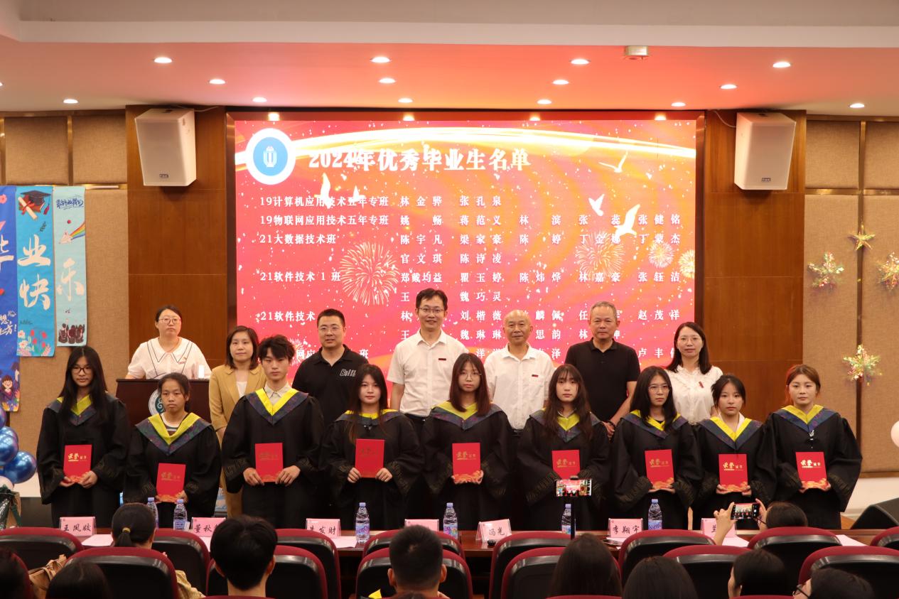 朱发财宣读了《关于同意林煌琴等493名毕业生专科毕业的决定》,标志着学子们正式完成了他们的学业旅程。参加典礼的领导老师为毕业生代表颁发毕业证书,为他们在数信学院的求学历程划上圆满句号。