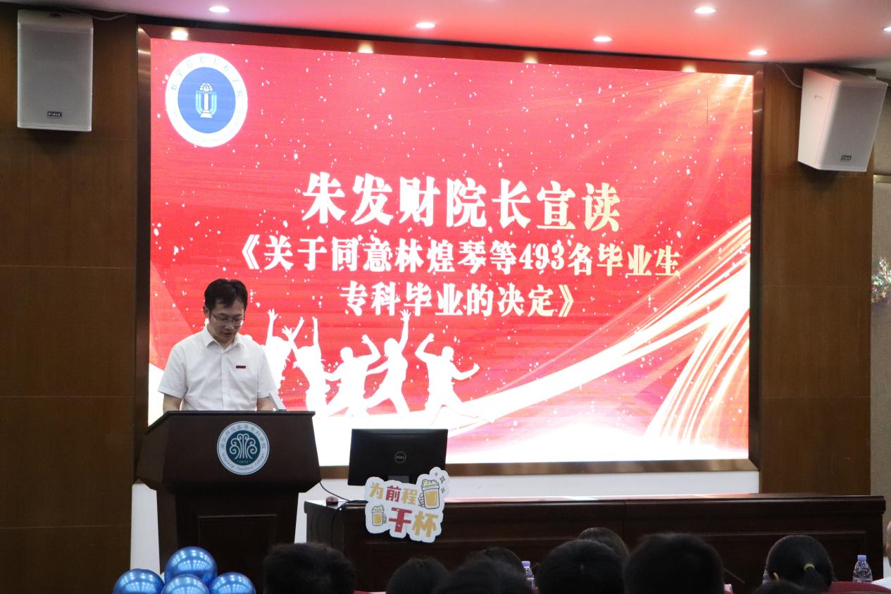 朱发财院长宣读《关于同意林煌琴等493名毕业生专科毕业的决定》