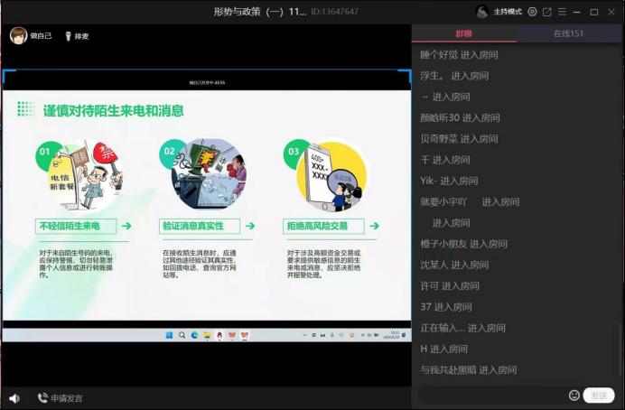 辅导员赖翠凤介绍了金融诚信的基本概念,强调了它在社会经济发展中的重要作用。接着,通过一系列真实的金融诈骗案例,向同学们揭示了金融领域中的不诚信行为给个人和社会带来的巨大危害。这些案例让同学们深刻认识到金融诚信的重要性,并引发了他们对如何维护金融诚信的深入思考。