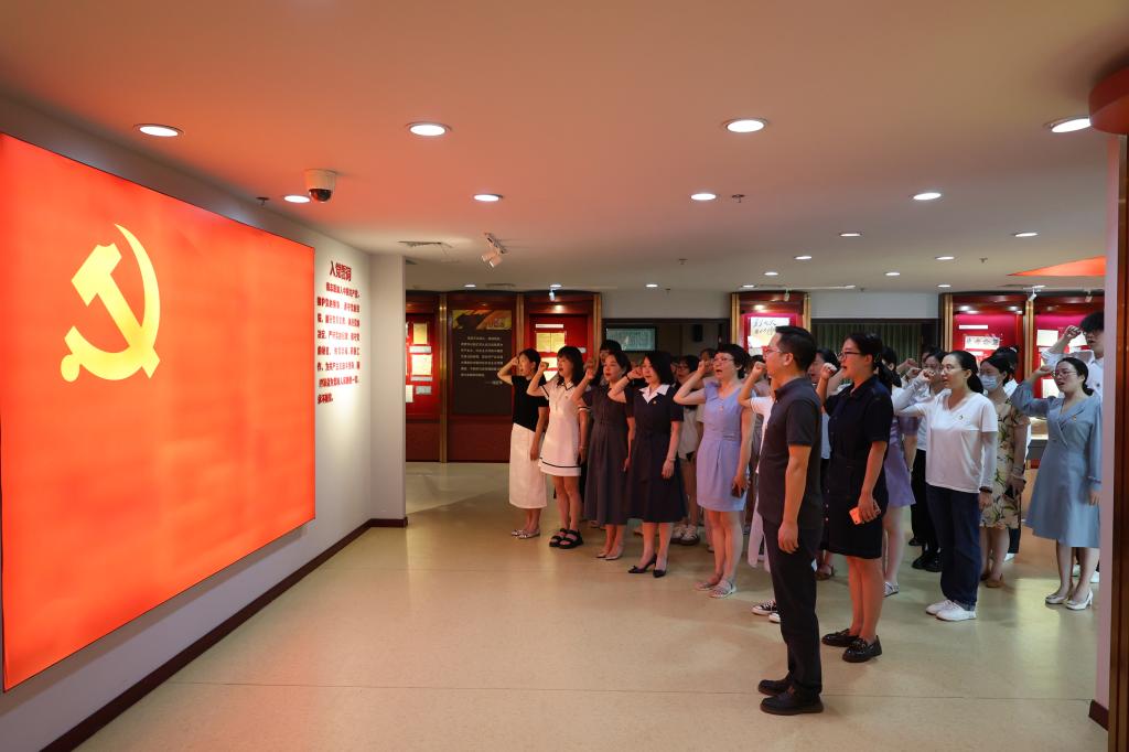 王海波向大家送上“政治生日”贺卡和祝福。他指出,党员集体过“政治生日”,是用庄严的方式,提醒大家牢记党员身份,切实发挥先锋模范作用。在党旗前,王海波带领全体党员重温入党誓词,“我志愿加入中国共产党,拥护党的纲领,遵守党的章程……”,铮铮誓言,铿锵有力,表达了党员们随时准备为党和人民牺牲一切的忠诚和内心无比坚定的理想信念。