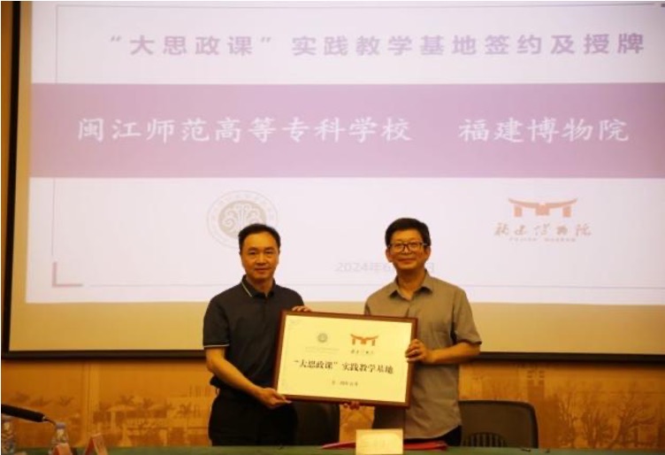 为深入学习贯彻习近平总书记对学校思政课建设作出的重要指示精神,进一步拓展我校思政课实践教学基地,6月25日上午,我校与福建博物院举行“大思政课”实践教学基地签约暨授牌仪式。福建博物院副院长楼建龙、龚张念及主要部门负责同志,我校马克思主义学院负责同志及教师代表参加签约仪式。