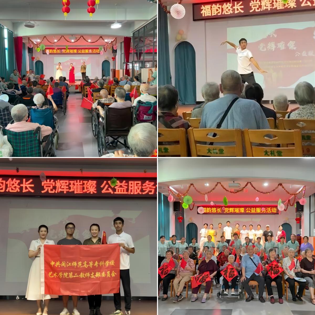 七月流火,党恩如歌。7月5日,艺术学院教师第二党支部与艺术学院福文化传承志愿服务队携手走进福建长青养老温馨家园,共同举办了一场别开生面的“福韵悠长,党辉璀璨”志愿服务活动。此次活动旨在通过多元化的艺术形式,传承红色基因,弘扬党的光辉历程,同时融入福文化元素,为福建长青养老的长者们传递幸福与美好的祝愿。