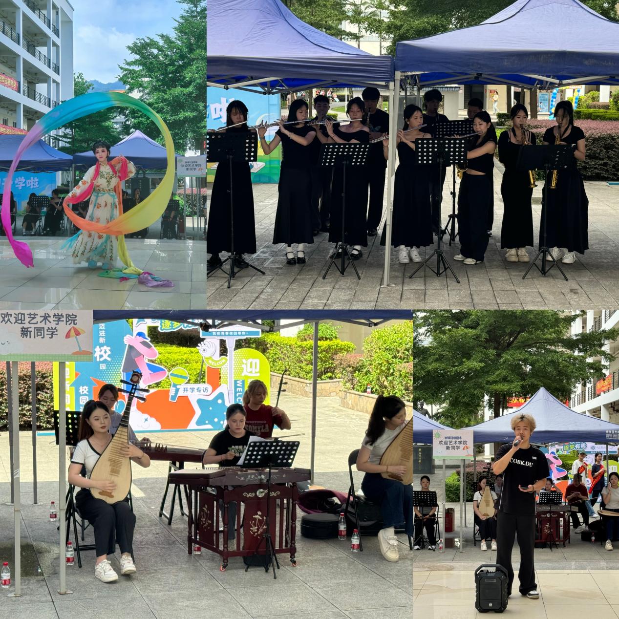 在迎新现场,迎新志愿者队伍在校门口、学生报到处、宿舍楼早早就位,迎接来自五湖四海的新同学。艺术学院学子在校园里表演闽剧、筝乐、管乐,载歌载舞,迎来掌声连连。校领导与2024级新生及家长进行了亲切交流,并代表学校热烈欢迎2024级新生,希望新生珍惜大学时光,努力学习,还为家庭经济特别困难新生代表送上“关爱大礼包”,勉励同学们安心求学、潜心向学,表示学校将提供多元资助保障,不让一个学生因家庭经济困难而失学。