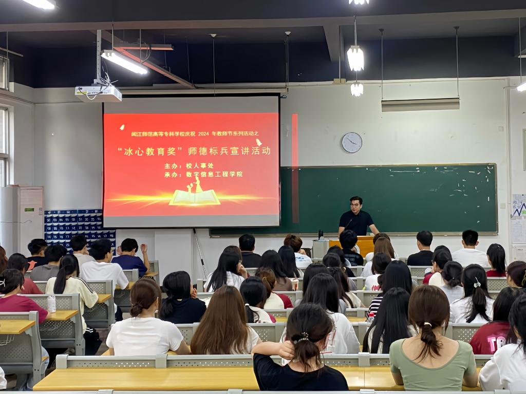 为了弘扬教育家精神,筑造新时代师德,9月25日下午,数字信息工程学院在仓3-104举行了“冰心教育奖”师德标兵宣讲活动,本次活动由数字信息工程学院副院长叶宁为24级现代教育技术专业的同学进行宣讲。