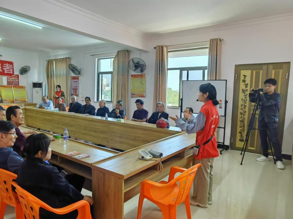 活动中,实践队的同学率先为爷爷奶奶们讲解高血压、糖尿病等慢病的防治及正确用药知识。她们热情洋溢、认真尽责,为老人们打开了健康知识的大门,提升了他们的安全用药意识。