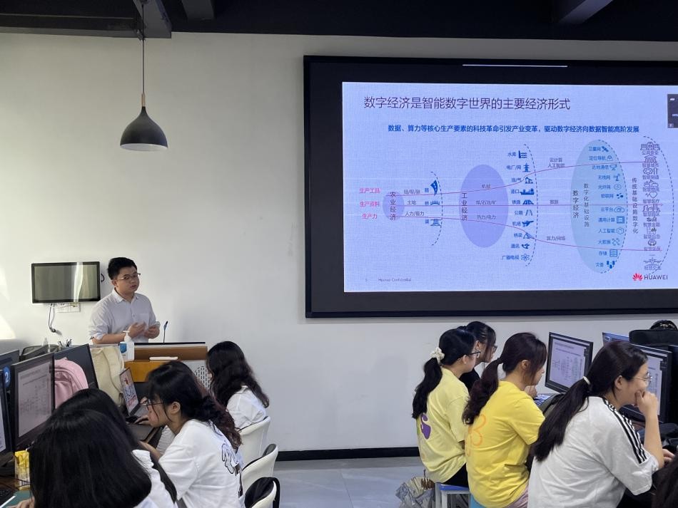 活动中,华为全球培训中心的鲲鹏讲师任政权为师生们带来了一场题为《鲲鹏校园公开课》的精彩讲座。任政权介绍了数字经济时代的战略、鲲鹏生态体系和鲲鹏云服务等内容,激发学生们对探索数字世界基础设施的浓厚兴趣。他希望学生们通过学习,能够培养扎实的专业知识、过硬的专业技能和突出的综合创新能力,成为符合产业需求的领先人才。