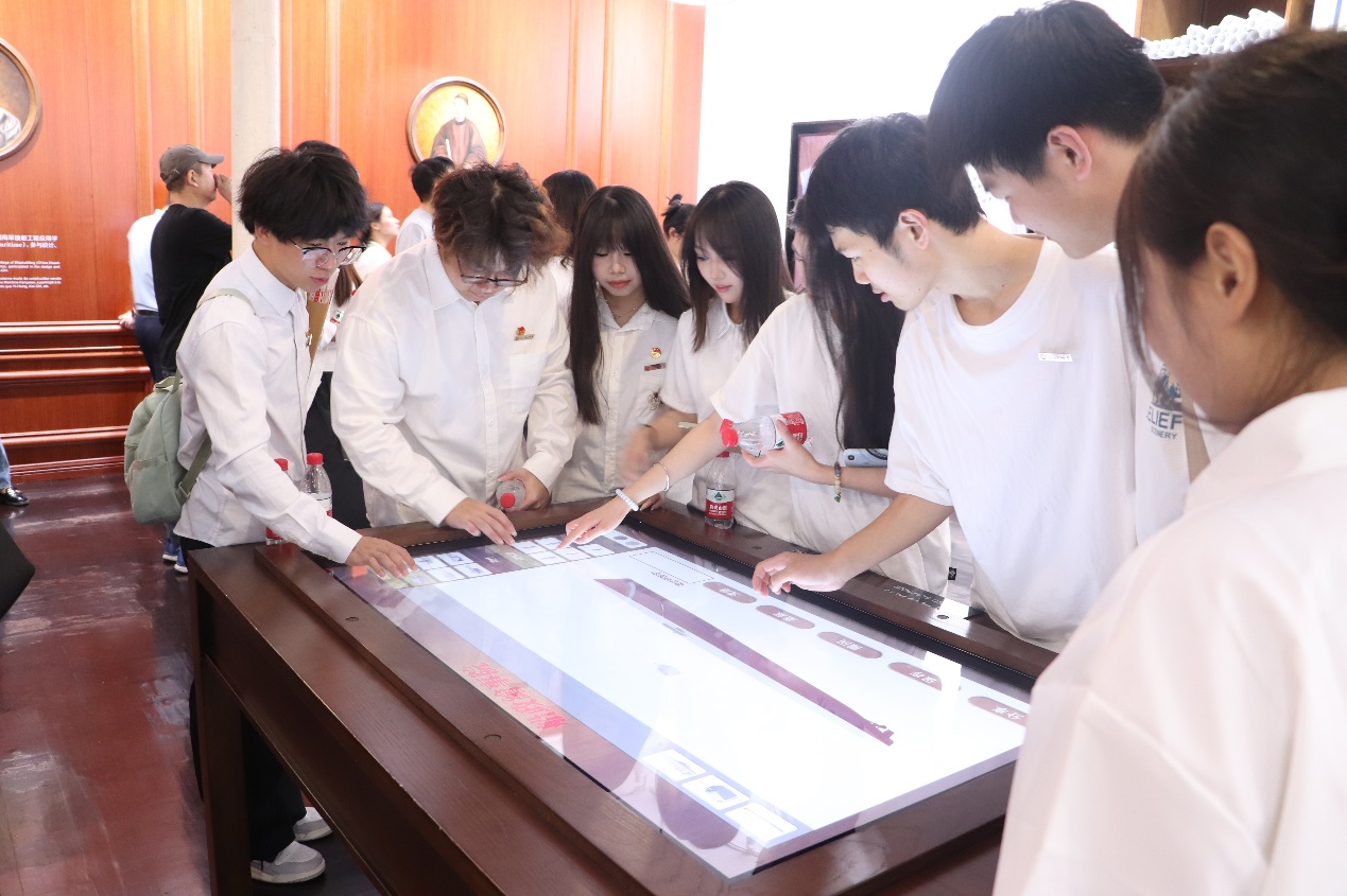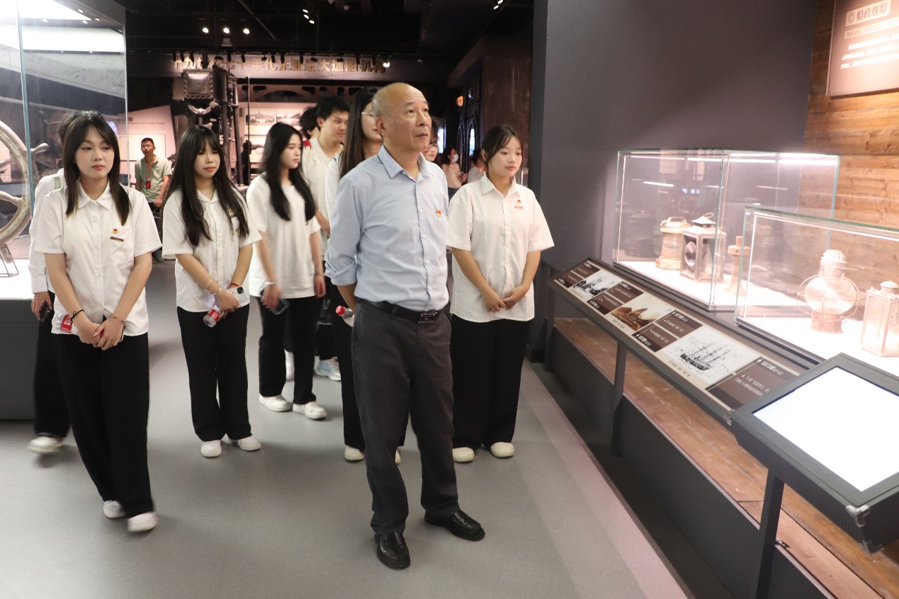师生一行,首先走过船政时空隧道,身临其境感受历史场景与现代科技的交融。在工作人员的讲解引导下,师生先后参观了绘事院、轮机车间、铁胁厂、船政书局、船政文化博物馆等。园区内具有厚重年代感的建筑群、生产设备以及各种形制的船只、坦克、飞机模型令人印象深刻,脑海中不自觉联想起当时的生产场景。船政文化博物馆内丰富的展览陈列,从船政诞生、船政教育、船政制造、船政海军和船政文化等六个方面全面介绍船政的历史和文化,让师生沉浸体验属于那个时代的辉煌与艰辛、祖国欣欣向荣的变化与发展。