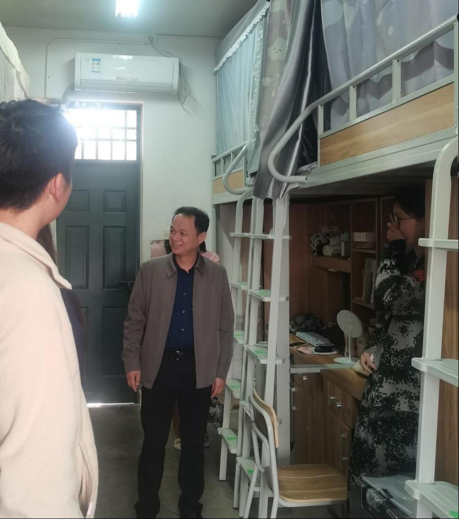 走访过程中,王华与同学们进行了亲切交谈,详细询问了同学们在军训期间的学习、生活状况。他特别关心同学们的作息规律,鼓励大家保持良好的生活习惯,确保有充足的精力投入到军训和学习中。同时王华强调,同学们务必增强安全意识,遵守宿舍管理制度,防止火灾等安全事故的发生。