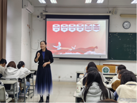 在课堂上,陈淑华围绕《中共中央关于进一步深化全面改革、推进中国式现代化的决定》的内容,剖析了全面深化改革的历史进程与显著成就,以及这一进程对中国式现代化的重要推动作用。她强调,深化改革是推进中国式现代化的必由之路,每一项改革措施都紧密关联着国家的长远发展与民族的伟大复兴。