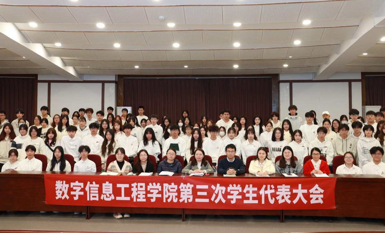 12月18日下午,数字信息工程学院在仓山校区多功能厅召开第三次学生代表大会。学院党委副书记董秋锋,团委指导老师李晶晶,各学生组织指导老师,全体辅导员,以及50余名学生代表参加会议。会议由徐燕芳同学主持。