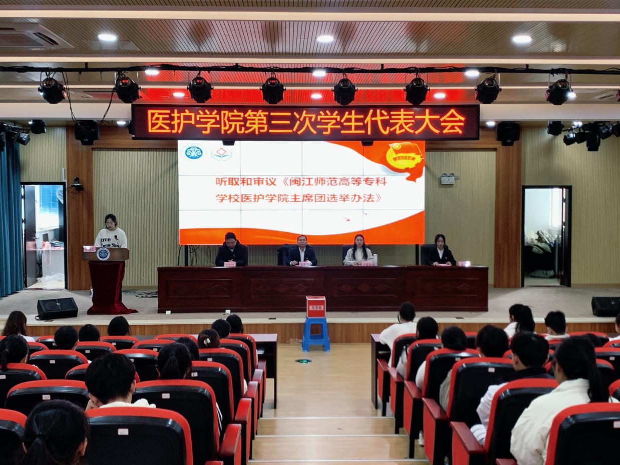 大会审议通过了《闽江师范高等专科学校医护学院主席团选举办法》,并选举产生了医护学院第三届学生会主席团成员。