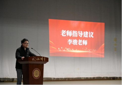 李骏回顾同学们的学习经历,指出同学们上班会课时作为一名教师的信念感稍显薄弱,希望同学们能够深度挖掘自身潜力,充分展现独有的师范生风采。