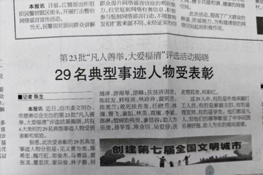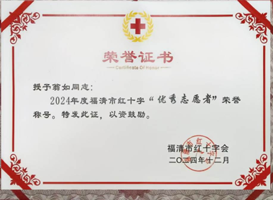 事迹经历:福清市三山镇埕边村居民陈优明,2024年6月16日与村民去上坤村采洗花蛤途中遇车祸,大腿严重粉碎性骨折,在福清市医院急救。因家庭经济困难且家庭成员不符献血条件,陈优明急需用血。三山益百姓团队接到埕边村书记求援后,迅速动员组织志愿者赴福清献血。周末,翁如同学看到消息毫不犹豫报名献血。最终在全体志愿者帮助下,陈优明成功脱离生命危险。