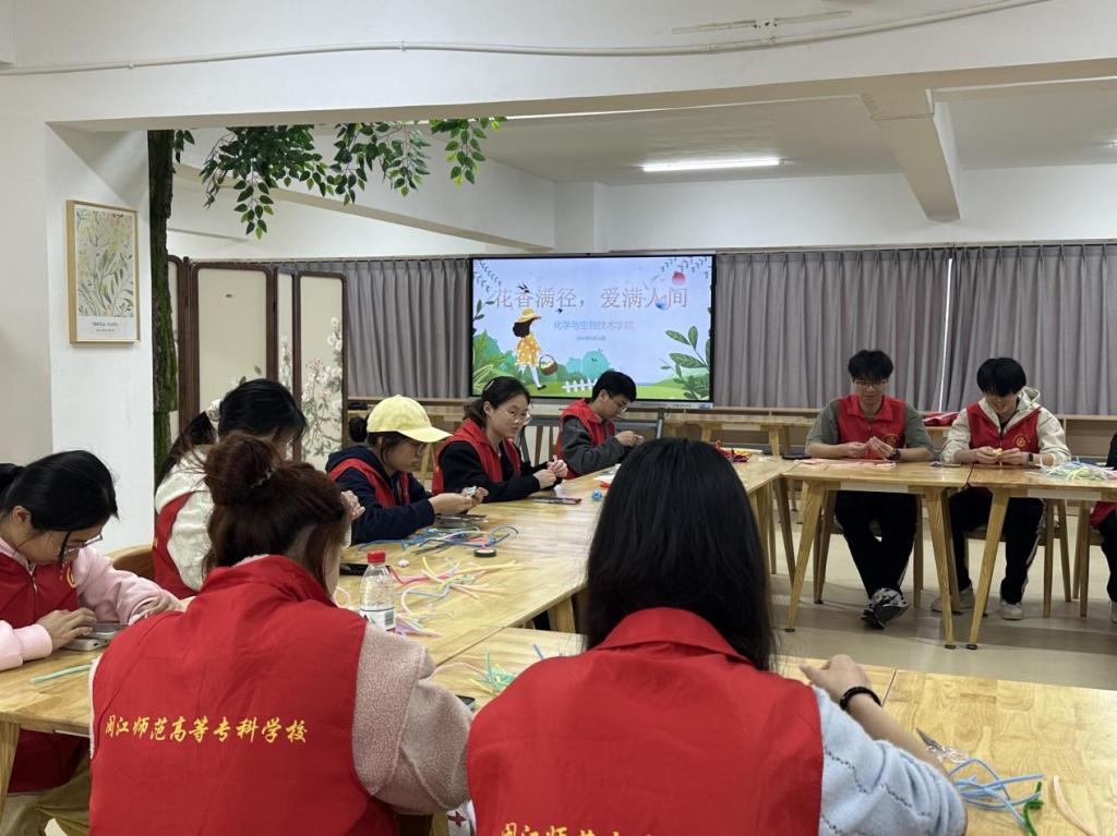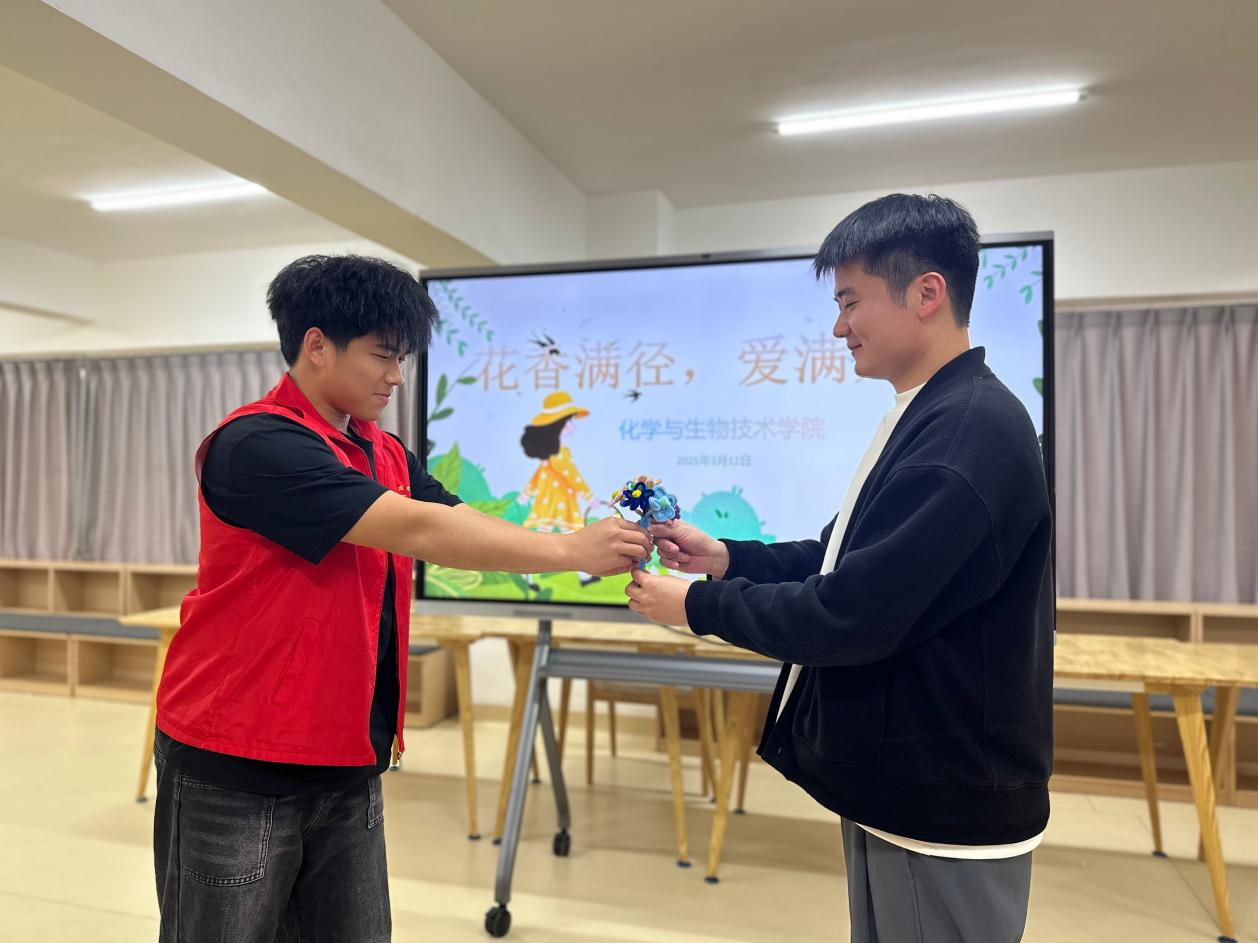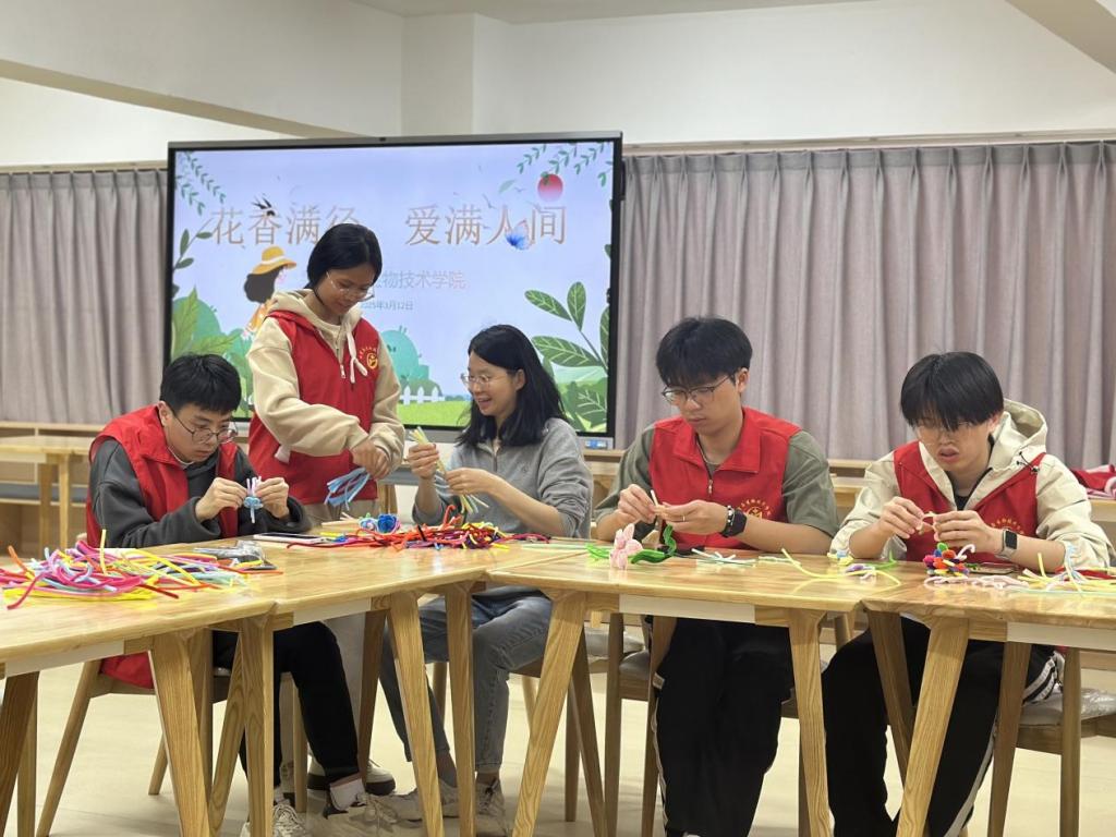 3月12日,化学与生物技术学院联合福清校区学生社区党支部开展“花香满径,爱满人间”志愿服务活动。此次活动以手作传情、劳动育美为主题,通过手工制作扭扭花传递温暖,并清洁维护学生社区环境。