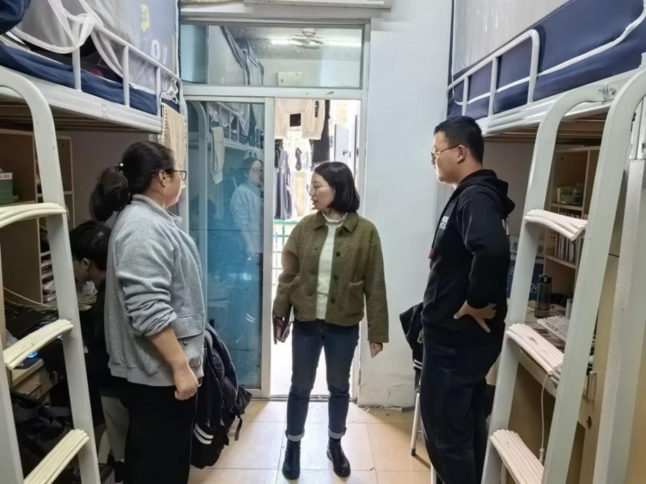 同时,老师们仔细查看了宿舍的卫生状况和设施情况。对于干净整洁、布置温馨的宿舍给予了充分肯定和赞扬;针对存在卫生问题或设施损坏的宿舍,督促同学们及时整改和报修,强调舒适整洁的居住环境对身心健康的重要性。同学们对老师们的关心表达了感谢,并表示会积极改进,营造良好的宿舍氛围。