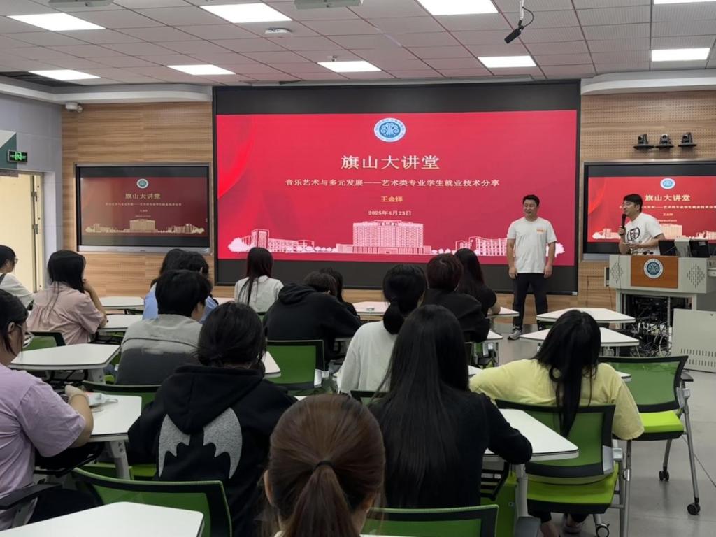 4月23日,艺术学院举办旗山大讲堂主题讲座活动,本次讲座邀请著名音乐人、主持人、影视演员王金铎担任主讲嘉宾。王金铎以“音乐艺术与多元发展——艺术类专业学生就业技术分享”为主题结合自身丰富的艺术从业经验,从音乐艺术之路、多元发展路径到实用技能提升,为现场学子带来了一场兼具启发性和实操性的职业发展讲座。讲座由学院团委书记周宇航主持。