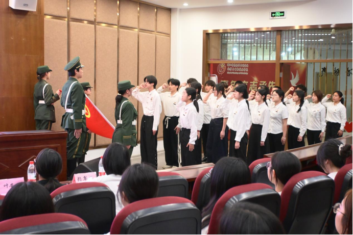 会上还宣读了2024年新团员名单,并为新团员颁发团徽。新团员们精神抖擞、整齐列队,面向团旗庄严宣誓,铿锵誓言彰显青春担当。新团员代表张静怡上台发言,她言辞恳切,表达了作为新时代青年投身团组织建设与发展的坚定决心与饱满热情。