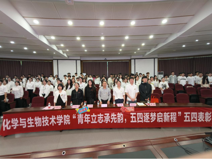 4月29日,化学与生物技术学院2025年五四表彰大会在仓山校区学术报告厅举行。学院党总支书记王华,宣传统战部林焰老师、学院团委书记赖翠凤,辅导员及各班学生代表参加大会。