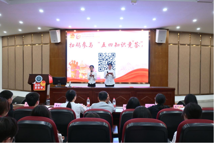 大会还设置了“五四知识竞答”互动环节,表演了歌曲《如愿》、脱口秀《青年说》等节目,展示出青春学子的风采。学院师生寄语VCR温情呈现,师长们温暖的鼓励与殷切的期望,传递着关怀与力量。最后全体师生齐声宣读《新时代青年倡议书》,大会在激昂的团歌声中圆满落幕。