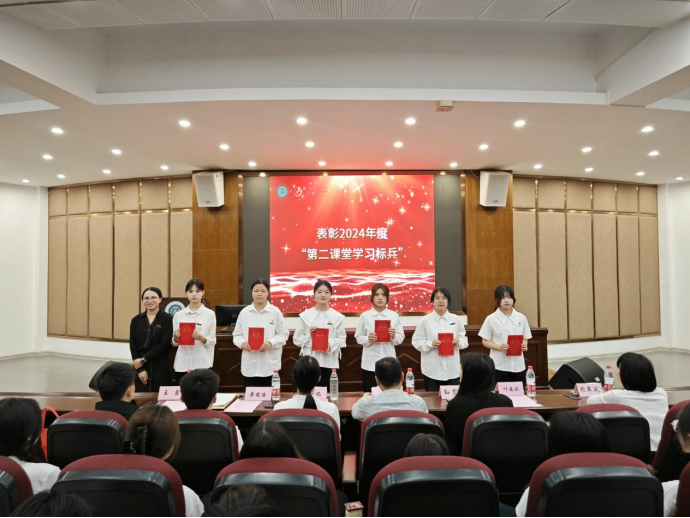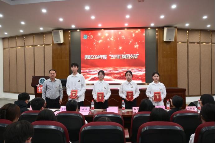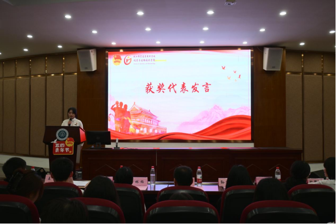 学院领导与老师们先后为获得“五四红旗团支部”“先进班级”“优秀学生干部”“三好学生”“优秀共青团员”“第二课堂”学习标兵等获奖代表颁奖。获奖学生代表张芷萱深情分享成长感悟,她表示将以实际行动践行五四精神,在专业领域深耕细作、发光发热。