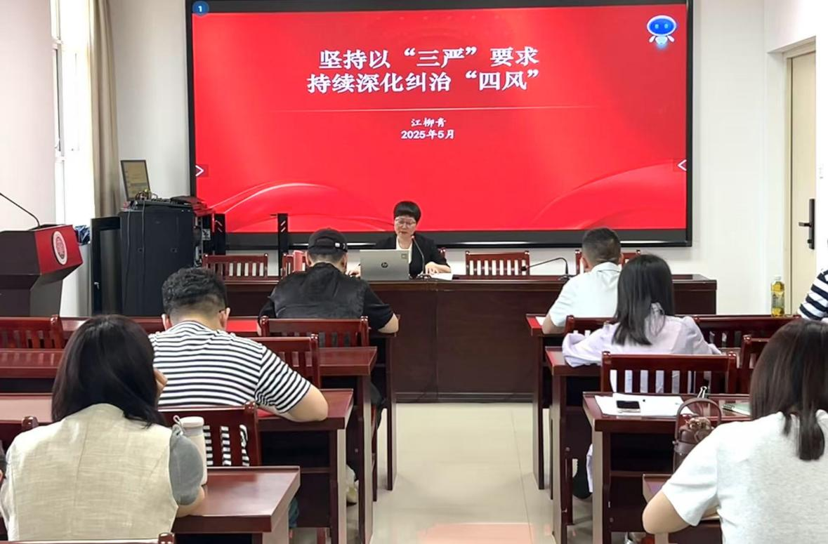 江柳青以《坚持以“三严”要求持续深化纠治“四风”》为题讲授党课,从制定中央八项规定、反对“四风”的原因、新时代落实中央八项规定精神的伟大实践及基本经验、坚持“三严”要求持续深化纠治“四风”等三个方面,深入浅出地引导党员干部职工严守纪律底线、改进工作作风、积极主动作为,为党员干部上了一堂生动的纪律教育课。
