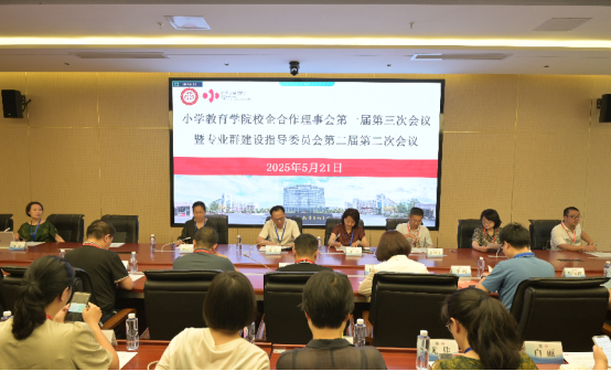 5月21日下午,小学教育学院校企合作理事会第一届第三次会议暨专业群建设指导委员会第二届第二次会议在新图书馆102会议室召开。闽江师专副校长陈强、海峡书局社长李长青、福建师范大学心理学系主任孟现鑫、福建师范大学小学教育系副主任蔡旭群、福建省教育学院教授陈曦、小学教育学院书记陈淑华、小学教育学院院长张宁及24家企事业单位代表、我校各学院领导、教师代表共同出席会议。大会由小学教育学院副院长练怡主持。