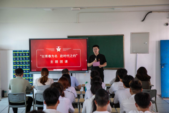 仪式上,季昌文结合习近平总书记给谢依特小学戍边支教西部计划志愿者服务队队员的回信,为大家带来《以青春之名赴时代之约》的主题团课,鼓励新老团员们要以西部计划志愿者们为榜样,将个人的成长与国家的发展紧密结合起来。