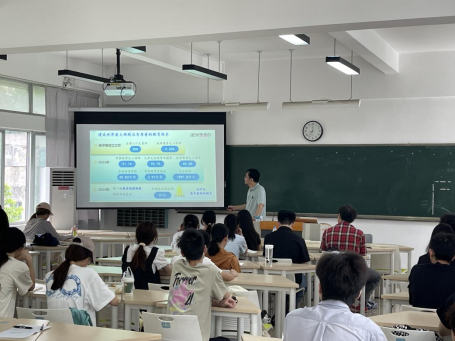 5月23日上午,数字信息工程学院院长朱发财为2024级学生带来一堂富有专业特色的形势与政策课。