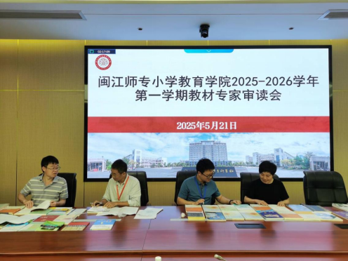 5月21日下午,小学教育学院在旗山校区图书馆102会议室召开2025-2026学年第一学期教材专家审读会。会议由教育教研室副主任邵伊雯主持。