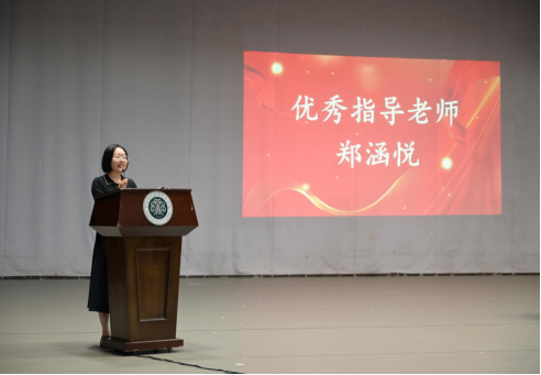 余海燕老师代表优秀指导老师发表感言。她表扬同学们在教学工作中的严谨负责、专注投入,期望其坚守初心。郑涵悦老师以“团建、双导、成长”为核心,分享指导心得,总结团建聚心、双导协同机制,展现对学子成长的欣慰,传递师生共促专业发展的思考。