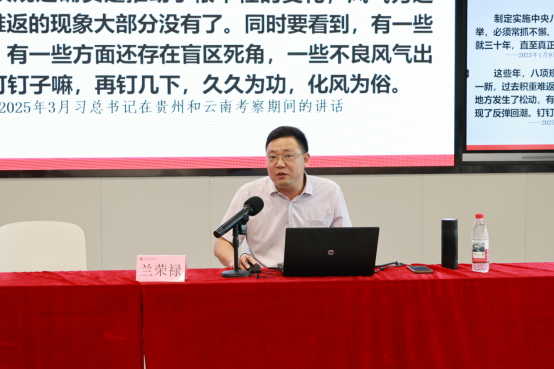 兰荣禄副教授以“中国共产党作风建设的历史进程与经验启示——深入贯彻中央八项规定精神”为主题进行了深入讲解。他回顾了中国共产党的百年历史,详细阐述了中国共产党在不同历史时期作风建设的重点内容:从革命战争年代形成的密切联系群众、发扬民主精神、理论联系实际的三大优良作风,到新时代出台的中央八项规定及其对作风建设的进一步深化。通过讲解,全体党员深刻认识到作风建设是党不断发展壮大的关键所在,与人心向背、党的生死存亡以及党和国家事业的兴衰成败紧密相连,进一步启发了党员们对如何在教育教学一线践行优良作风的思考。
