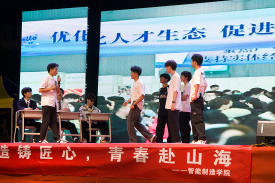 智能制造学院退役大学生士兵原创情景剧《传承》,以他们的真实经历为蓝本,生动呈现从入伍、在队到退伍的心路历程和不忘初心、不改本色的精神传承。