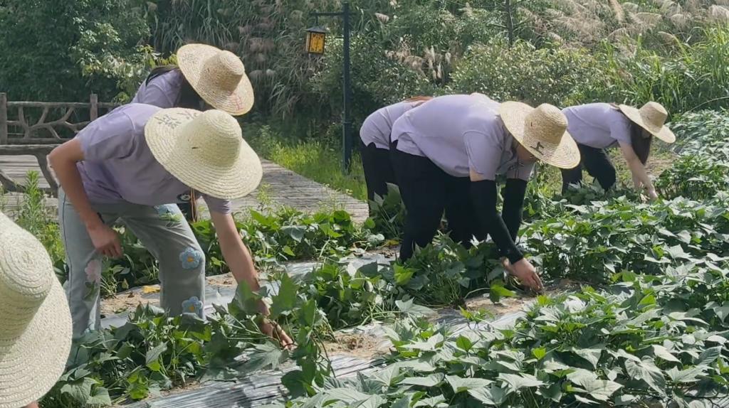在黄瓜地里,队员们仔细寻找藏在绿叶间的鲜嫩黄瓜,感受收获的乐趣。在白地瓜种植区域,去芽与地瓜挪秧的工作则需要更多的耐心和细心。队员们蹲在地上,一株一株地进行操作,深刻体会到农事劳作的艰辛与不易。通过这些农事体验,队员们不仅掌握了一定的农业生产技能,更明白了“粒粒皆辛苦”的深刻含义,进一步培养了吃苦耐劳的品质,拉近了与土地和农民的距离。