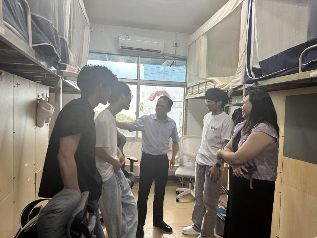 8月13日,2023级学生小学期返校首日,化学与生物技术学院党总支书记王华、院长陈宗保、副院长林媛、袁晓娟及辅导员、班主任深入学生宿舍,与同学们展开亲切交流,切实了解毕业班学生返校后的生活状况与实际需求。