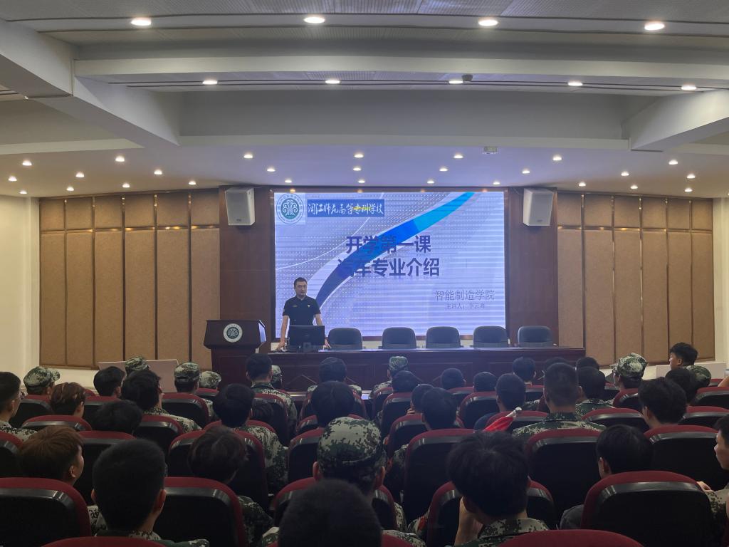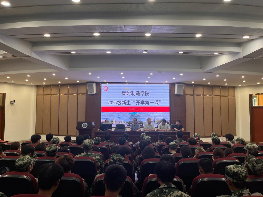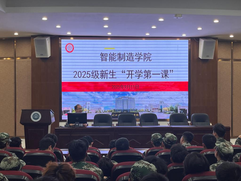 近日,智能制造学院在报告厅召开2025级新生“开学第一课”。学院领导、各专业负责人及全体 2025 级新生齐聚一堂,围绕学籍管理规定解读与四大核心专业介绍展开,为新生们送上了一份“入学指南”。