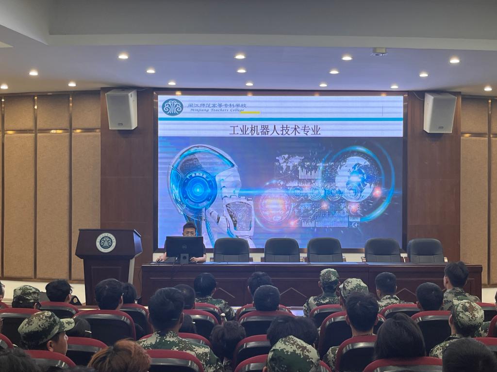 工业机器人技术专业负责人谢邦晋老师以“机器人如何改变制造业”为切入点,结合福建本地智能制造企业的应用场景,介绍了专业核心课程与实践教学体系。专业依托省级工业机器人实训基地,与泉州华数机器人等企业开展深度合作,学生可参与真实项目实训,毕业后能胜任工业机器人运维、编程调试等岗位。