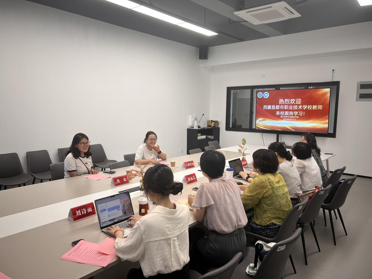 9月17日下午,外语商贸学院在产创楼303会议室召开西藏昌都市职业技术学校教师跟岗学习欢迎会。学院党总支书记林锦芯、院长何少娴、副院长陈海燕及骨干教师代表共同出席。会议由副院长刘诗雨主持。