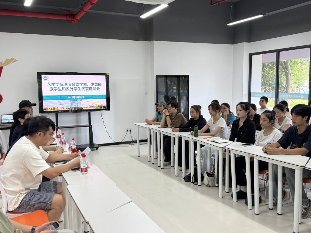 9月28日中午,艺术学院在旗山一站式社区召开港澳台学生、少数民族学生及省外学生代表座谈会,副校长、艺术学院党委书记江柳青,艺术学院院长徐青,副院长方晶、陈洪翔,各教研室主任、辅导员及班主任参加座谈。活动由学院团委书记周宇航主持。