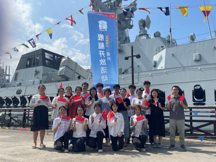 活动期间,师生登上新型护卫舰,在海军官兵的带领下,参观了船舱内部、舰载武器系统等核心区域,了解了舰艇的定位、功能、作战方式等信息,体验了海军生活。学生代表李佳文感慨道:“站在甲板上,目睹先进的设备,心中满是安全感与自豪感。深刻体会到数字技术对国防安全的支撑作用,也更加坚定了投身科技强国事业的信念。”师生们走进互动体验区,了解了枪械结构,学习了旗语知识,沉浸式感受海军文化的魅力。