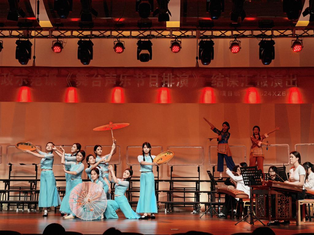 课程负责人徐丽红副教授介绍:“《舞台声乐节目排演》是音乐教育专业核心实践课程,旨在通过‘理论+排练+演出’的全流程训练,提升学生的声乐技巧、舞台表现力及团队协作能力。本次专场演出的节目均由学生自主编导、排练完成,教师仅担任艺术指导。从选题策划到服装道具设计,从声部配合到走位调度,学生们全程参与,真正实现了‘做中学’。”