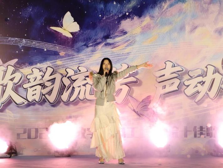 决赛现场,伴随主持人报幕,首位选手凭借一首极富挑战性的《阿刁》,唱出了命运的抗争与生命的坚韧,亦点燃了全场师生的热情。后续登台的选手纷纷亮出“拿手绝技”,尽显青春风采。有的选手演绎经典英文曲目,发音标准且流畅,对旋律的把控精准无误,以灵动的声线诠释异域音乐风情;有的选手以激昂的声线唱响热血旋律,饱满的情绪裹挟着少年意气,每一句演唱都极具爆发力,再度点燃全场热情;有的选手以低缓的声调诉说温情心事,嗓音温润细腻,将藏于旋律中的细腻情感缓缓道来,触动现场学子心底的柔软之处;更有选手凭借扎实的唱功挑战高难度曲目,气息平稳、转音流畅,展现出过硬的演唱功底,赢得了评委与观众的一致赞誉。
