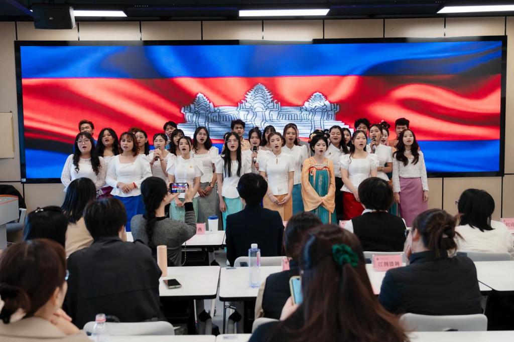 本次展演集中展示了“学习共同体”的建设成效。活动在双方学子共同演绎的精彩节目中拉开帷幕,通过融合两国文化元素的歌舞、合唱及语言类节目表演、技能竞赛颁奖与圆桌座谈三大环节,全面呈现了中柬学生在跨境电商实践、语言应用及文化互鉴方面的学习成果。整场活动节目丰富、互动热烈,既有展现专业技能的实践作品评比,也有体现文化融合的联合演出,现场气氛融洽,充分展现了中柬青年一代的协作精神与创新活力。