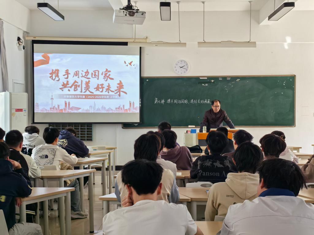 李闽以“携手周边国家,共创美好家园”为主题,围绕“新形势下周边在外交全局中的重要性”“‘亲诚惠容’周边外交理念”等内容展开讲解,向学生阐释了我国周边外交的战略意义、实践成果与未来方向,引导学生深刻认识新时代中国特色大国外交在我国周边地区的生动实践,引导学生深入理解“亲诚惠容”周边外交理念。